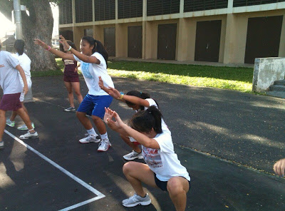 The Islanderz were supposed to come by today as well as the rest of the everyday crew, but since the roads were closed...nobody could get to us!!!! so...the girls took to the park and Jack sent them a WOD they could do there with their basketball coach. They sent us some pictures...thanks guys! The WOD was...