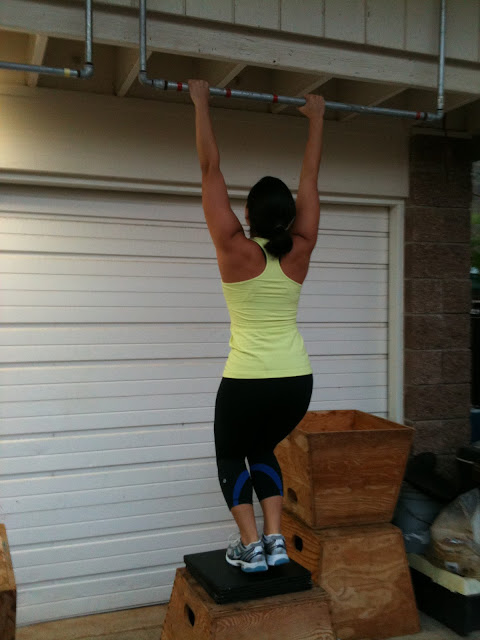 Coach's focus for me today was to get as many pullups each round unbroken...it was good, I was able to get my first round unbroken then i got 7's, 6's, and 5's. Happy with that cuz I normally drop off after 3! Also tried to do the WOD with 20 lb KB since we ran out of 20 lb DB, but changed to 15 lb DB after the second round. The weight was awkward and I wasn't moving the weight well. Need to work on that...